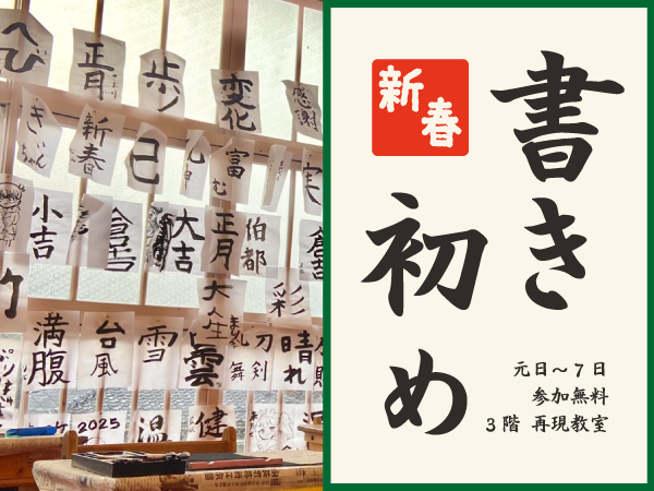 再現教室で机に向かって筆をとり、新年の抱負を書きましょう!